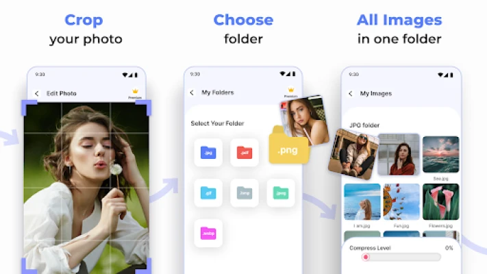 اس ایپ کو استعمال کرنا انتہائی آسان ہے۔ بس اپنی گیلری یا کیمرے سے ایک یا متعدد تصاویر منتخب کریں، انہیں اپنی مرضی کے مطابق ترمیم کریں یا کراپ کریں، اور پھر مطلوبہ آؤٹ پٹ فارمیٹ کا انتخاب کریں۔ آپ اپنی تبدیل شدہ تصاویر کا نام بھی بدل سکتے ہیں اور انہیں فوری طور پر شیئر کر سکتے ہیں یا اپنے فولڈر میں محفوظ کر سکتے ہیں۔ فوٹو ٹو پی ڈی ایف کنورٹر کے ذریعے، آپ اپنی تمام تصاویر کو الگ الگ منظم کر سکتے ہیں اور انہیں بغیر کسی معیار کے نقصان کے آسانی سے کمپریس اور شیئر کر سکتے ہیں۔ چاہے آپ کو چلتے پھرتے تصاویر کو تبدیل کرنے کی ضرورت ہو یا ایک منظم امیج لائبریری برقرار رکھنی ہو، یہ ایپ آپ کی تمام ضروریات کو پورا کرتی ہے۔