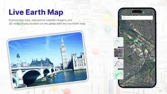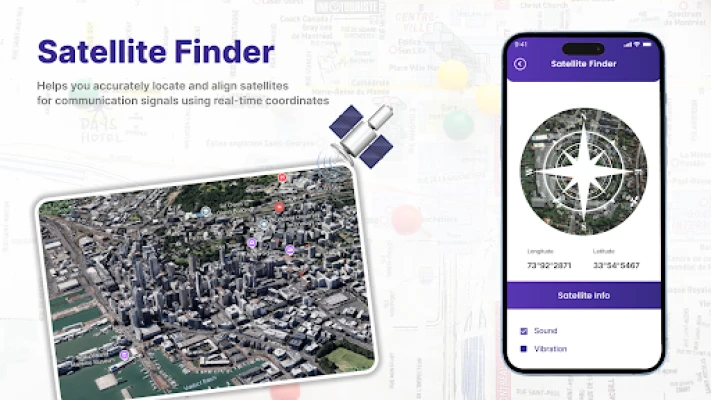 لائیو ارتھ میپ: جی پی ایس سیٹلائٹ آپ کے ارد گرد کے ماحول اور اس سے آگے کی گہرائی میں تحقیق کے لیے جدید ٹولز پیش کرتا ہے۔ سٹریٹ ویو کی خصوصیت کے ذریعے، آپ عملی طور پر سڑکوں، محلوں اور اہم مقامات کو دریافت کر سکتے ہیں، جس سے آپ کو اپنے ماحول کا ایک حقیقت پسندانہ تناظر ملتا ہے۔ یہ نیویگیشن اور گہری تلاش دونوں کے لیے انمول ہے۔ مزید برآں، 'قریبی مقامات' کا فیچر آپ کی سہولت میں اضافہ کرتا ہے، جہاں آپ دلچسپی کے مقامات جیسے ریستوراں، اہم مقامات اور تفریحی مقامات کو آسانی سے تلاش کر سکتے ہیں، جو نیویگیشن کو مقامی دریافت کے ساتھ ہموار طریقے سے جوڑتا ہے۔ شوقین افراد اور پیشہ ور افراد کے لیے، سیٹلائٹ فائنڈر ایک نمایاں ٹول ہے جو زمین کے گرد گردش کرتے ہوئے سیٹلائٹس کی حقیقی وقت میں پوزیشنوں کو ٹریک کرنے کی صلاحیت رکھتا ہے۔